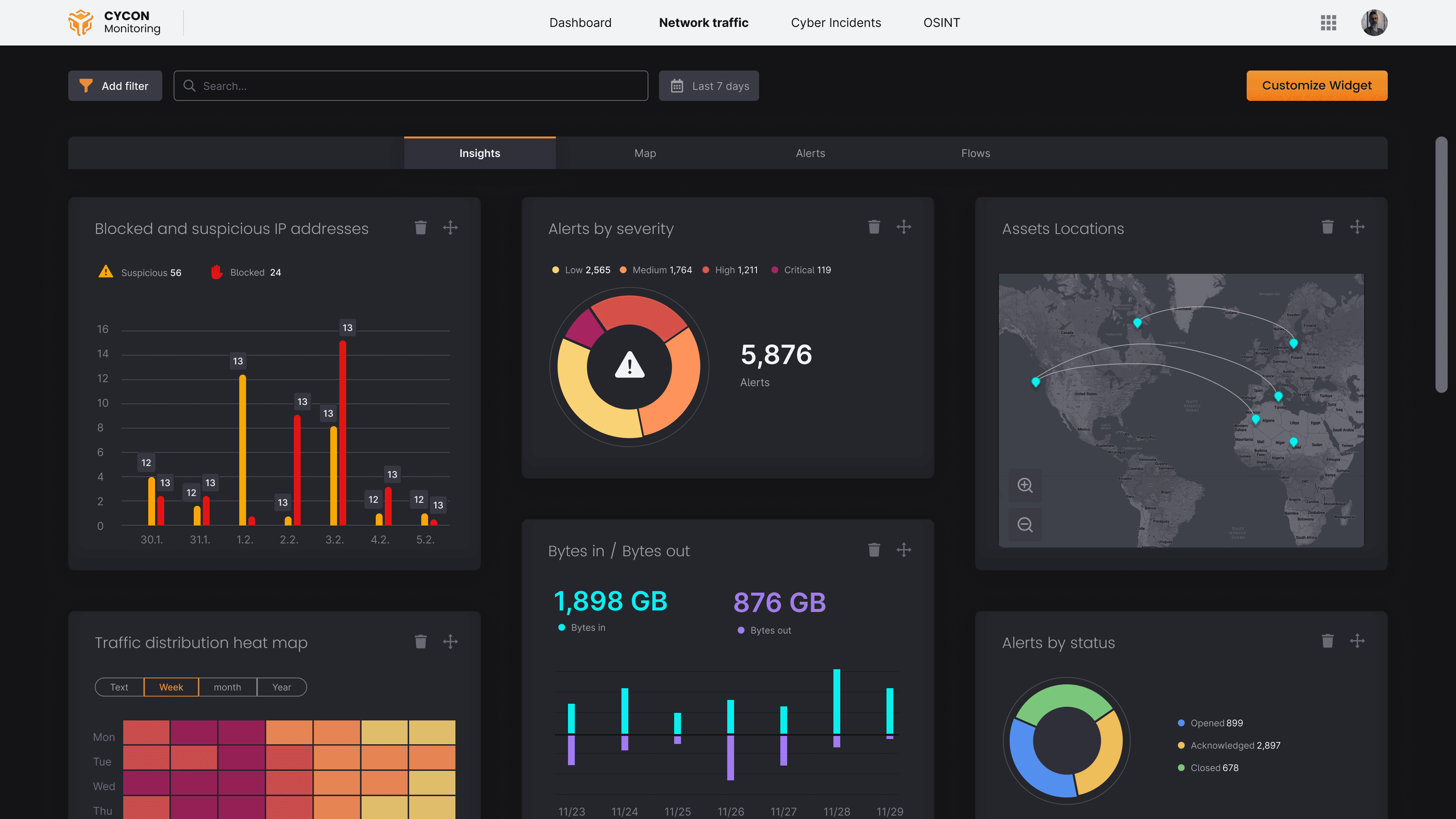 Displays real-time KPIs, insights and data from multiple sources, providing clear situational awareness during cyber attacks and supporting fast, informed response.